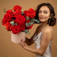 15 французских роз в шляпной коробке (сорт Нина)